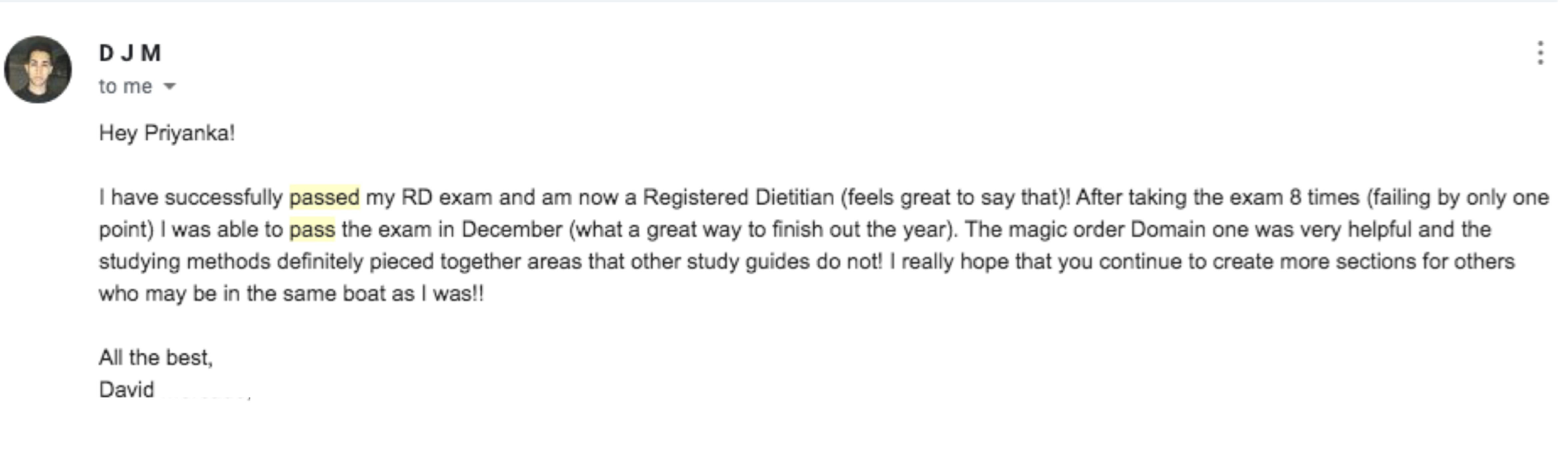 Priyanka dedicated a lot of energy, time, research to develop these unique solutions and used them herself when preparing for the RD Exam in 2015 and tutoring future dietitians from 2016 to 2017. These solutions are specifically geared to tackle issues for the RD Exam. When you make an investment, you are getting laser-specific instructions to target your RD exam-related challenges. This is difficult to create, and it’s one of the many reasons why we think you can feel good about spending your money on our programs. You are getting something unique and science-based.